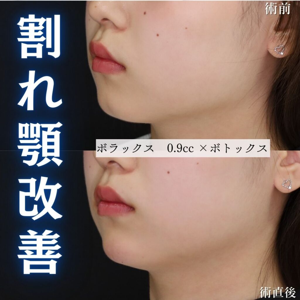 割れている原因は筋肉ということもあるので、併せてボトックスをするとより良いです◎