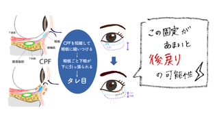 この時、CPFをどれだけ引き上げて固定するかによって、まぶたのカーブやタレ目の度合いが変わります。