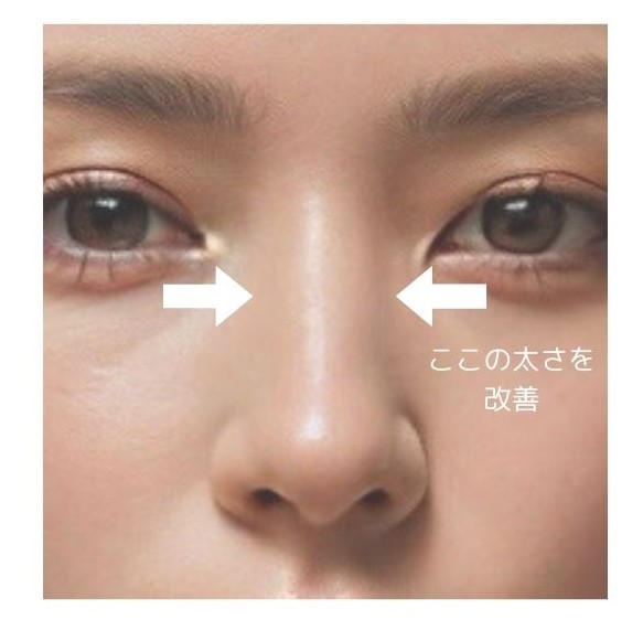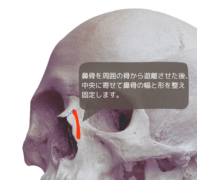 左右の鼻骨を骨切りして中央に寄せて固定する手術方法で、「鼻骨骨切り幅寄せ術」とも呼ばれています。
