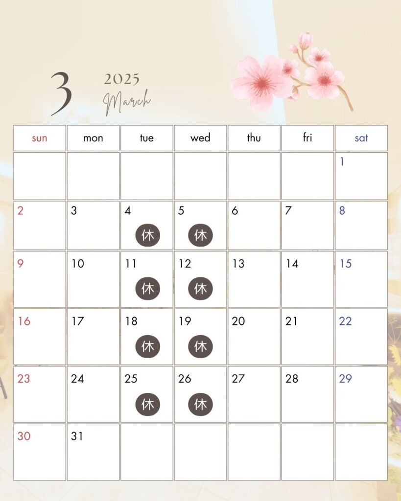 学生様の春休みになりますので、ご予約混み合う可能性がございます。