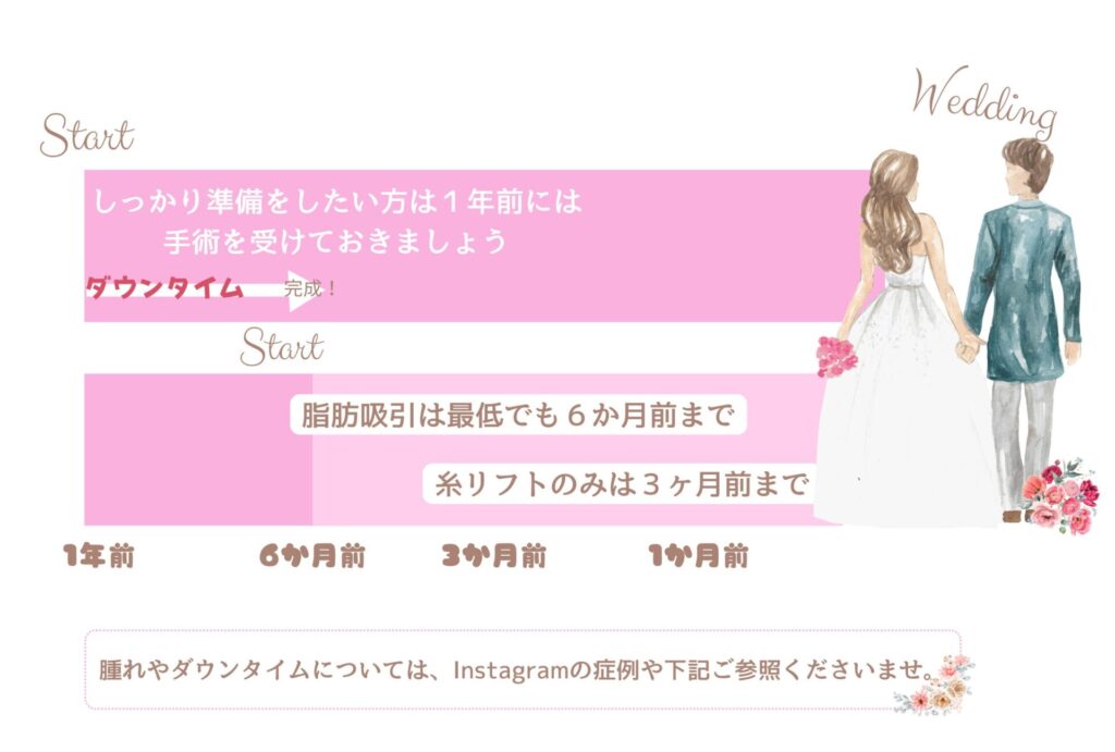 外科手術はしっかりと効果がでるので、式までに時間があり、お仕事のお休みが取れる人は一度ご相談くださいませ☺