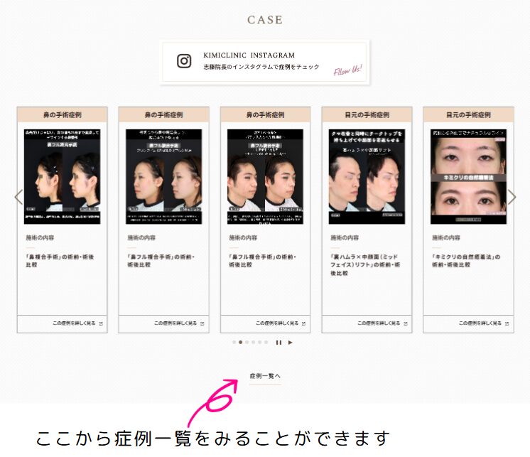 ホームページトップページから症例一覧を見ることも可能です。