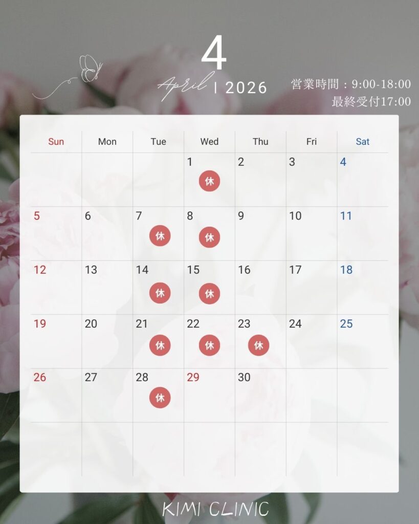 4月後半は通常とは休診日異なるため、ご注意くださいませ💦