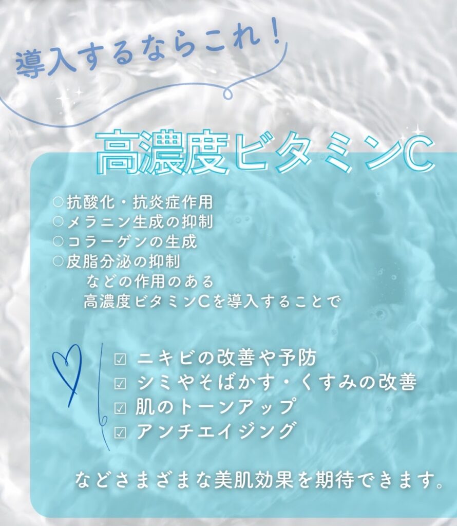 デルマスマートでは、高濃度ビタミンCやボトックスなどの薬剤を導入することが効果的です。